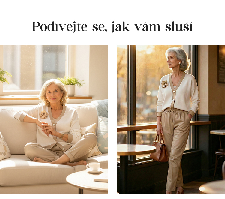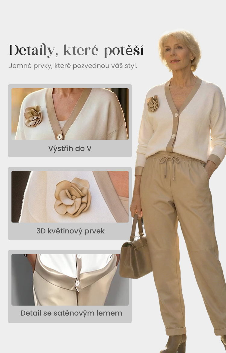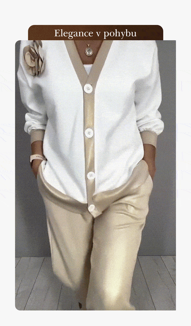 Dámský ležérní top s výstřihem do V a kalhoty s vysokým pasem