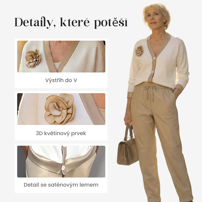 Dámský ležérní top s výstřihem do V a kalhoty s vysokým pasem