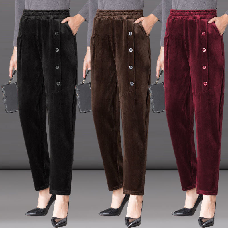 Dámské manšestrové teplé kalhoty s vysokým pasem